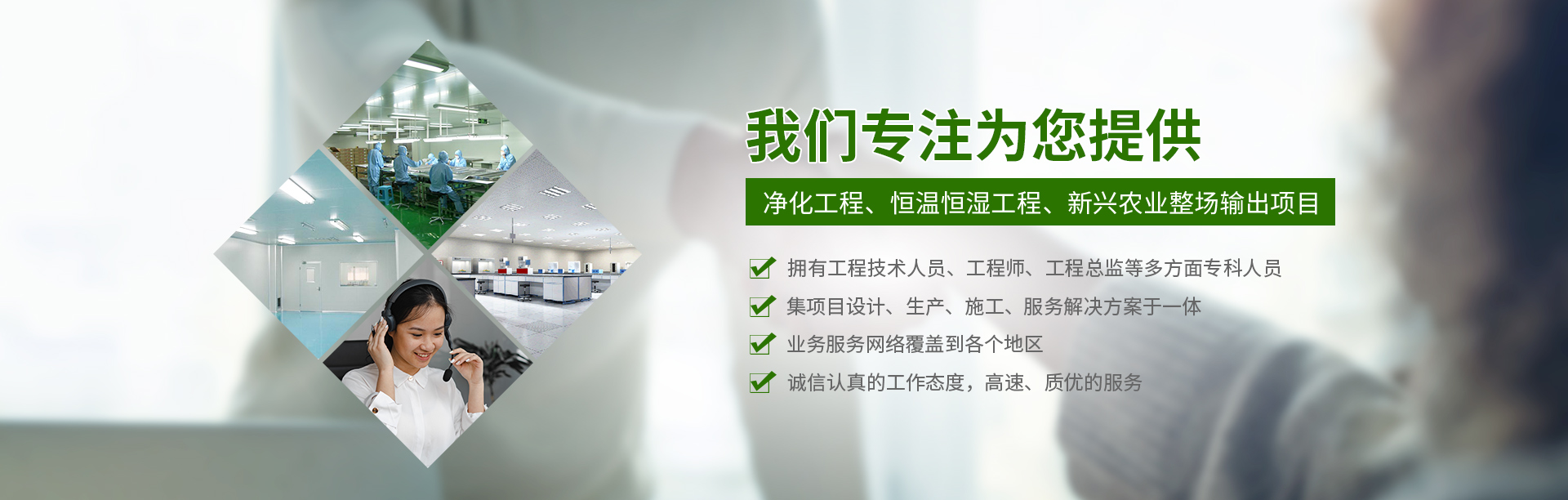 查看更多 >>專注于凈化工程、恒溫恒濕工程、新興農(nóng)業(yè)整場(chǎng)輸出項(xiàng)目設(shè)計(jì)